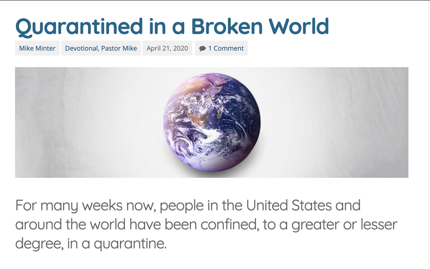 Article: Quarantined in a Broken World