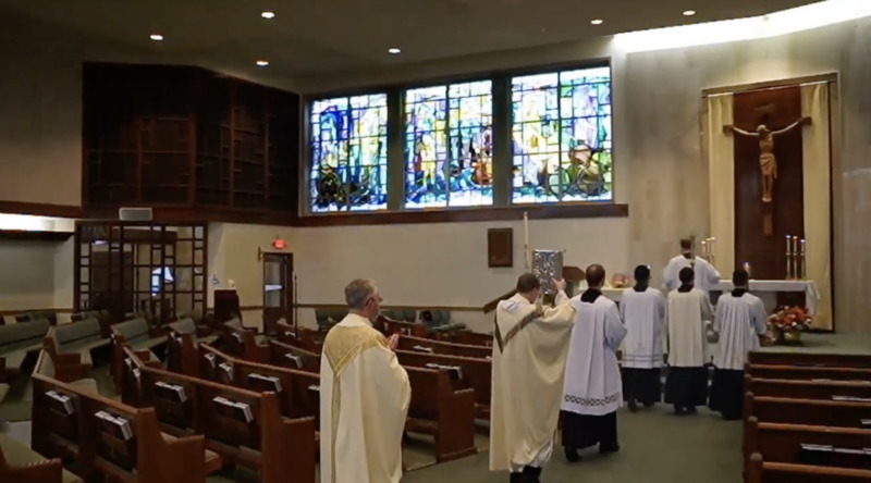 For the first time in our lifetimes, public Masses have been suspended. Priest could still offer Mass in private. During Holy Week, the priests began celebrating Mass in the Church and the staff helped to livestream it so that the faithful could join remotely.