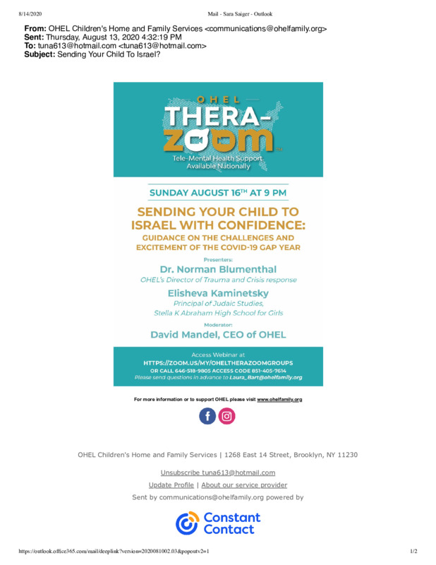 Ohel Children's Home and Family E-Newsletters