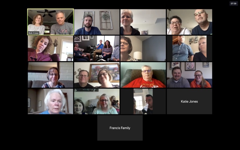 Each week we look forward to having our LifeGroup in our home to discuss the sermon from Sunday. With the pandemic we couldn’t meet in person because our group was larger than 10 and we just didn’t think it was safe. So we have had a Zoom meeting each week. At first we wondered how it would go since it seems so impersonal. Well it has been full of deep times of conversations about our God and what is happening. It has been a time where we are so much more open and willing share about or struggles and needs. It has been a time of deep meaningful prayer for each other and the world. Though we can’t wait to meet in person again we are so thankful for technology and the ability to come before God as a group. One neat thing our church also did after each sermon was live-streamed was have a Zoom Lobby huddle where people could see each other and say hi since we all aren’t in the same same Life Group. I included pictures of the Life Group and Zoom Lobby fellowship.
